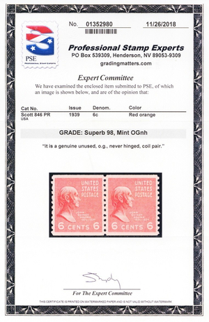 846, MNH Superb Coil Pair - PSE Graded 98 Certificate * Stuart Katz
