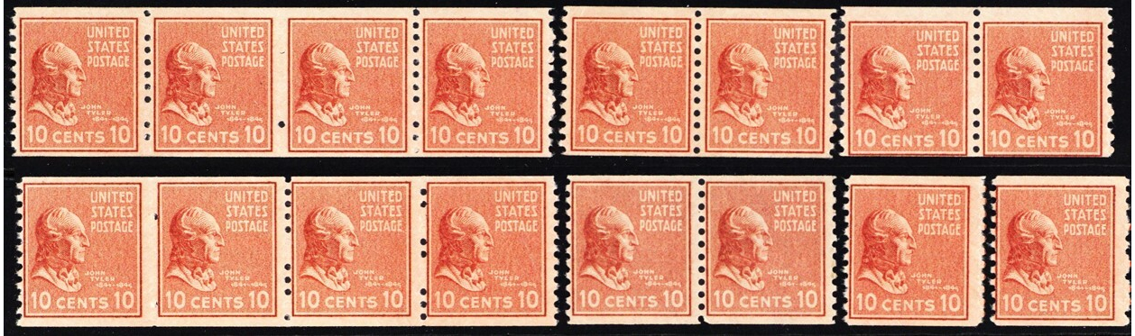 847, Mint NH Group of 10¢ Coils CV $190.00 - Stuart Katz