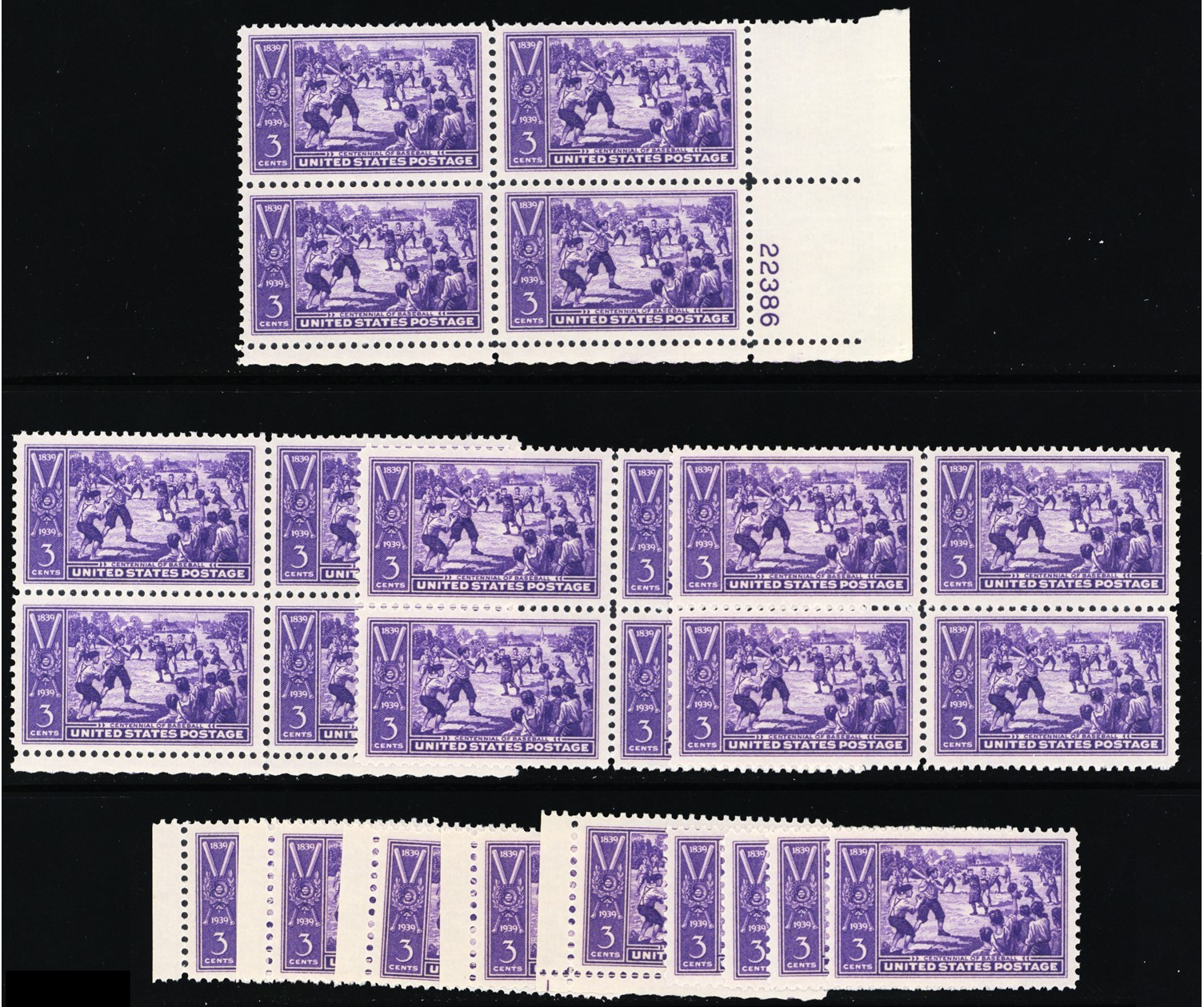 855, Mint VF NH 3¢ Baseball Lot of 24 Stamps Including PB * Stuart Katz