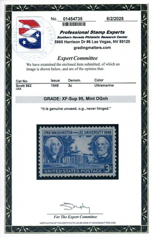 982, Washington & Lee University, Mint NH, PSE Graded XF-Sup 95 Cert, SMQ$25