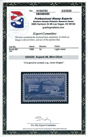 991, National Capital, Mint NH, PSE Graded Superb 98 Certificate, SMQ$55