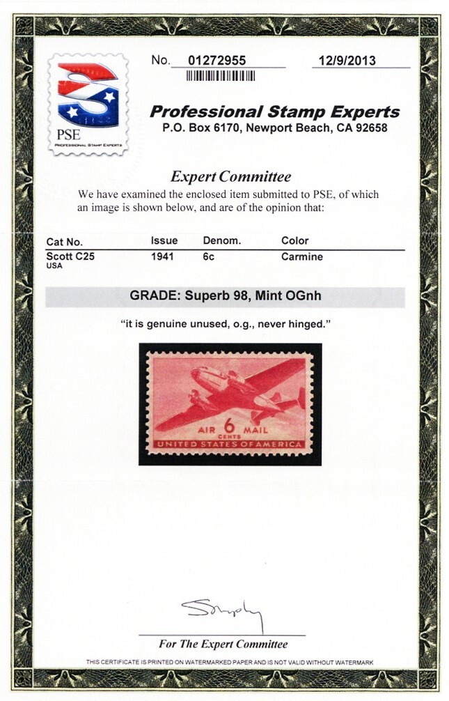 Due to the high cost of obtaining certificates we will only refund the cost of the stamp and not the cost of the certificate for stamps that sell for less than $250 that come back with a negative certificate. Stamps that sell for above $250 will receive a full refund for both the price of the stamp and cost of the certificate if it should come back not as described. For U.S. stamps only certificates from either APS, PSE or from the Philatelic Foundation are accepted, however "graded" certificates or "encased" items are not accepted.