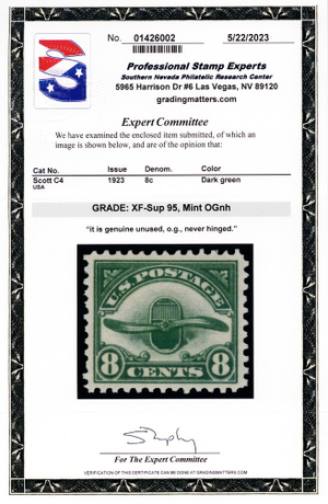 C4, Mint NH XF/Superb 8¢ With Graded 95 PSE Certificate Stuart Katz