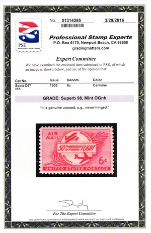 C47, Mint NH Superb 6¢ With Graded 98 PSE Certificate Stuart Katz