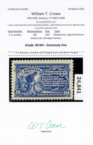 E11, Mint XF NH 10¢ "PINK BACK" With Graded 90 Certificate - Stuart Katz