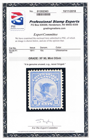 F1, Mint XF NH - With Graded 90 PSE Certificate * Stuart Katz