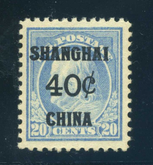 K13, 40¢ on 20¢ Shanghai, Mint NH, PSE Graded VF-XF 85J Cert, SMQ $475 for 85