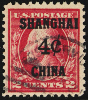 K2, Used 4¢ VF Shanghai Overprint - Beauty! * Stuart Katz