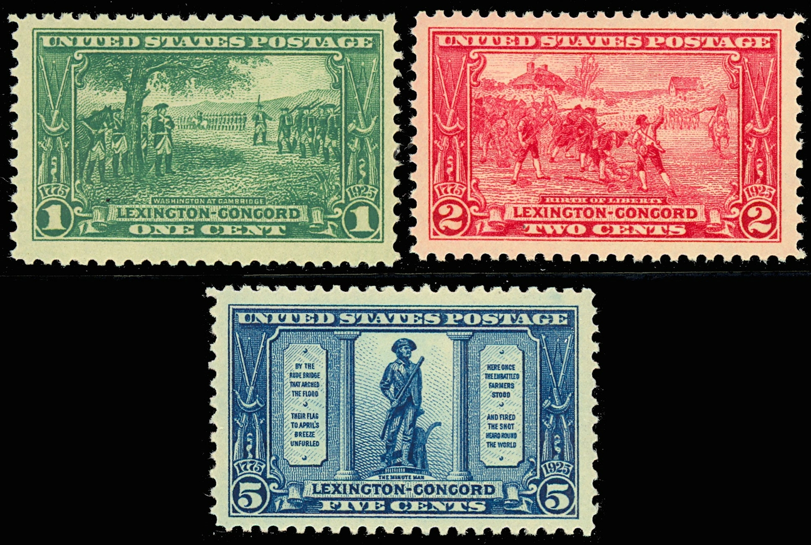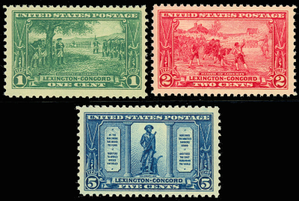 Lexington Concord Mint Very Fine Set of Three Stamps Postage Stamps Scott 617-19