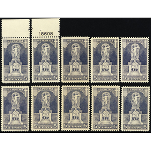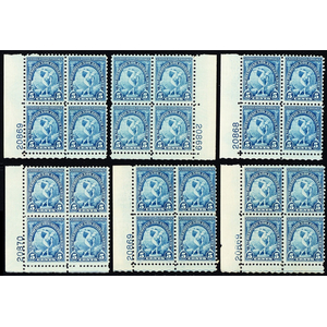 734, Mint FVF NH 5¢ SIX Plate Blocks CV $168.00 - Stuart Katz