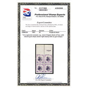 832B, Mint NH $1 On Watermarked Paper With PSE Certificate READ - Stuart Katz