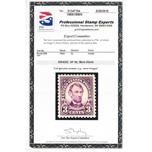 555, Mint NH XF 3¢ - With PSE Graded 90 Certificate - Stuart Katz