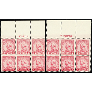718, Mint VF NH 3¢ SIX Plate Blocks CV $102.00 - Stuart Katz