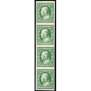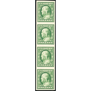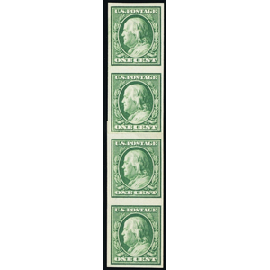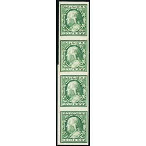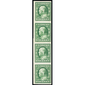 383V, Mint XF NH Vertical Imperforate Coil Strip of Four Stamps - Stuart Katz