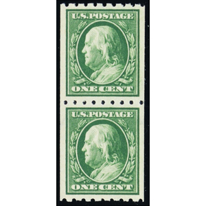 390, Mint 1¢ XF Coil Pair Post Office Fresh! - Stuart Katz