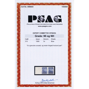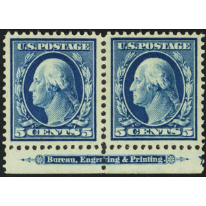 378, Mint VF NH 5¢ Bottom Imprint Pair - Stuart Katz