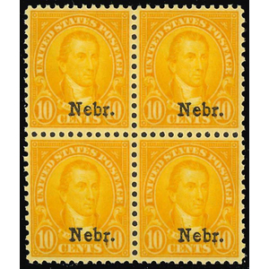 679, XF NH Gem Block of Four - 10¢ Nebraska Cat $720.00 - Stuart Katz