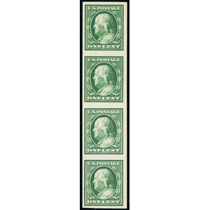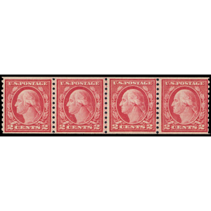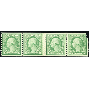 383V, Mint VF NH Imperforate Coil Vert Paste-Up Strip of Four - Stuart Katz
