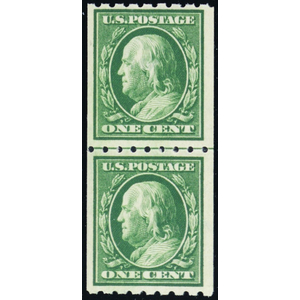 390, Mint 1¢ XF Coil Pair Post Office Fresh! - Stuart Katz