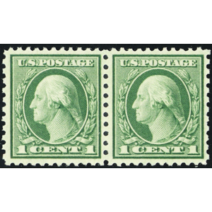 390, Mint 1¢ VF Coil Line Pair Post Office Fresh! Cat $72.50 - Stuart Katz