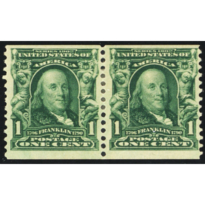 385, Mint LH/NH 1¢ - Coil Line Pair SCV $400.00 - Stuart Katz