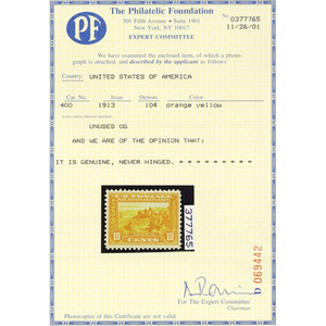400, Mint VF-XF OG NH 10¢ Pan-Pac With PFC Certificate - Stuart Katz