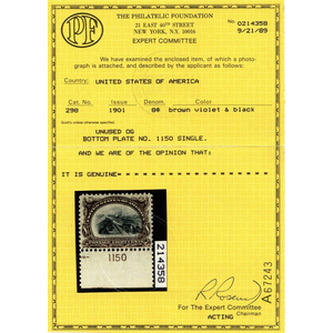 298, Mint XF NH 8¢ Canal Pl# Copy With PFC Certificate - Stuart Katz