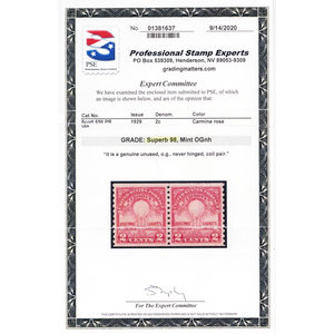 656, Mint Superb NH 2¢ Coil Pair - With Graded 98 PSE Certificate - Stuart Katz