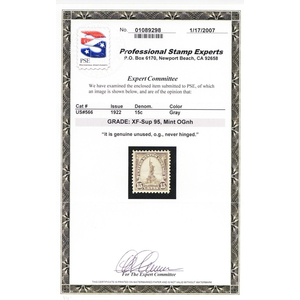 566, Mint XF/Superb NH 15¢ - With Graded 95 PSE Certificate - Stuart Katz