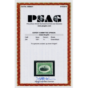 294, Mint XF NH 1¢ - With Graded 95 PSAG Certificate - Stuart Katz