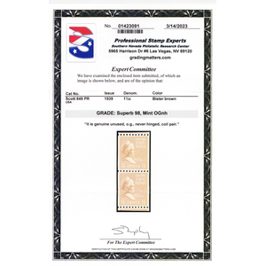 849, Mint Superb NH Coil Pair - With Graded 98 PSE Certificate - Stuart Katz