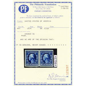 442, Mint FVF NH 2¢ Coil Line Pair - SCV $130.00 - Stuart Katz