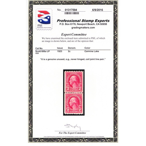 606a, Mint VF NH Carmine Lake Coil Line Pair With PSE Certificate - Stuart Katz