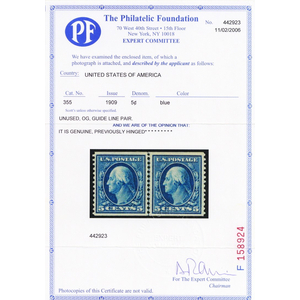 355, Mint LH VF 5¢ Coil Line Pair With PFC Certificate - Stuart Katz