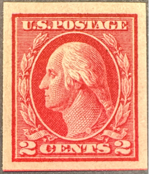 Scott #409 — 2¢ Washington, Carmine, Imperforate (1912 Issue).