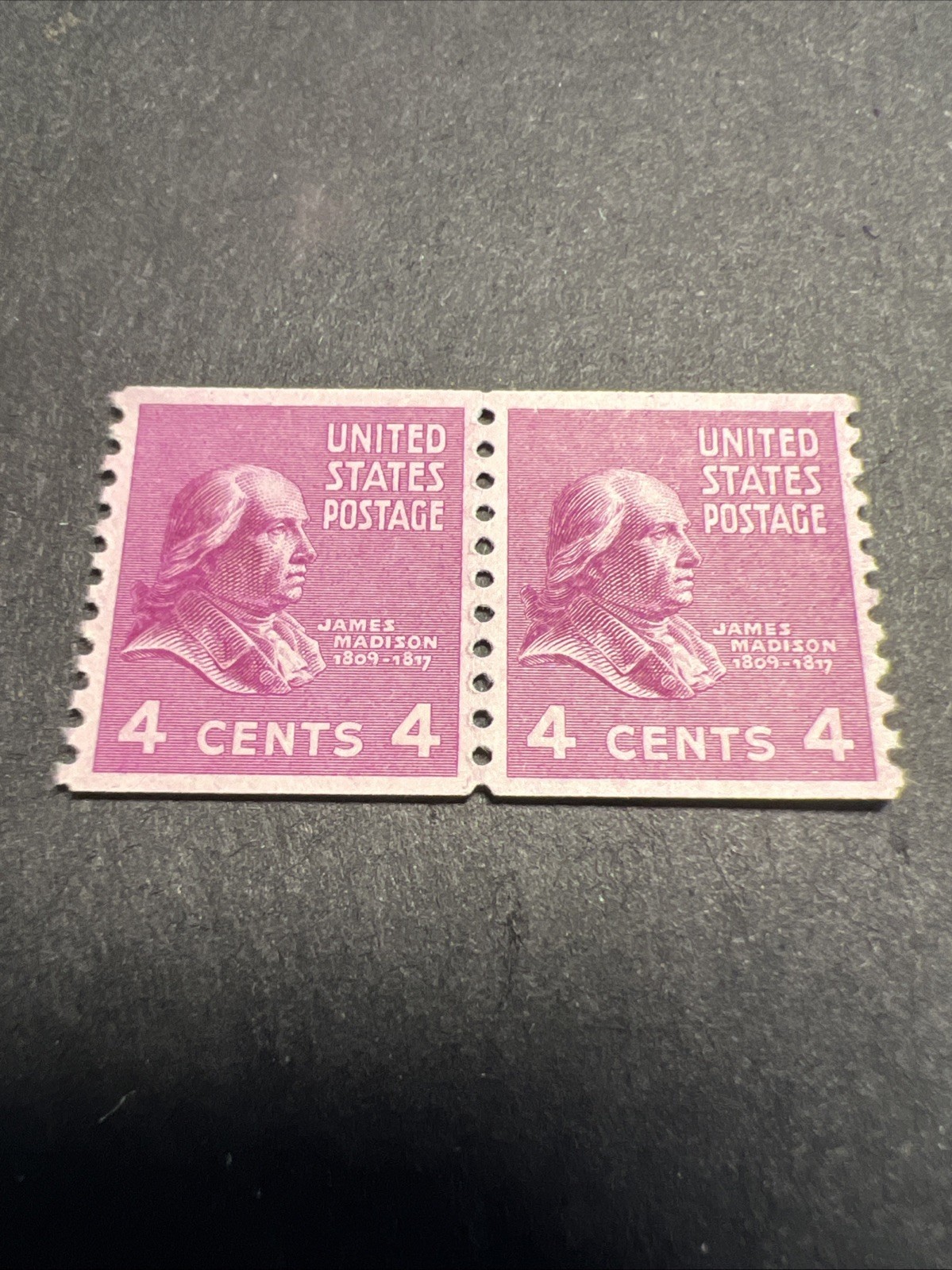 Scott # 843 Madison-MNH OG Prexie Vertical Coil Pair-US. Shipped with USPS Ground Advantage.