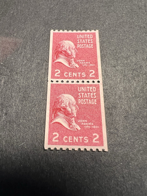 Scott #850 John Adams 2c Coil Pair MNH OG-US. Shipped with USPS Ground Advantage.