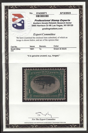 Scott #294a: 1901 1c Pan American w/ Inverted Center Centering & Condition: Mint. Fresh. Very Fine. Among the nicest of the available Reverse (Gum Side): Original gum. Hinged. Faults / Imperfections: None The item pictured is the actual item you are purchasing, unless otherwise noted. I also offer an interest-free layaway plan. Ask me about it!" All items will be mailed a day or two after payment is received. --------------------------------------------------------------------------------