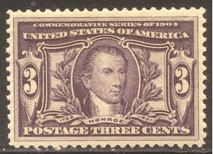 Scott #325: 1904 3c Louisiana Centering & Condition: Mint. Fresh. Very Fine. Reverse (Gum Side): Original gum. Never Hinged. Faults / Imperfections: None The item pictured is the actual item you are purchasing, unless otherwise noted. I also offer an interest-free layaway plan. Ask me about it!" All items purchased will be mailed a day or two after payment is received. --------------------------------------------------------------------------------