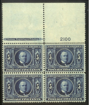 Scott #326: 1904 5c Louisiana Centering & Condition: Mint. Fresh. Very Fine and CHOICE Plate Block Reverse (Gum Side): Original gum. Faintly Hinged. Faults / Imperfections: None The item pictured is the actual item you are purchasing, unless otherwise noted. I also offer an interest-free layaway plan. Ask me about it!" All items will be mailed a day or two after payment is received. --------------------------------------------------------------------------------