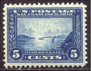 Scott #399: 1913 5c Pan-Pacific Centering & Condition: Mint. Fresh. Rich color. VF/XF and CHOICE! Reverse (Gum Side): Original gum. Never Hinged. Faults / Imperfections: None The item pictured is the actual item you are purchasing, unless otherwise noted. I also offer an interest-free layaway plan. Ask me about it!" All items purchased will be mailed a day or two after payment is received. --------------------------------------------------------------------------------