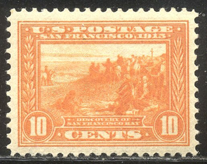 Scott #400A: 1915 10c Pan-Pacific, Orange Centering & Condition: Mint. Fresh. Intense color. Extremely Fine and CHOICE. Reverse (Gum Side): Full Original gum. Never Hinged. Faults / Imperfections: None The item pictured is the actual item you are purchasing, unless otherwise noted. I also offer an interest-free layaway plan. Ask me about it!" All items purchased will be mailed a day or two after payment is received. --------------------------------------------------------------------------------
