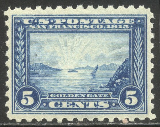 Scott #403: 1913 5c Pan-Pacific, P10 Centering & Condition: Mint. Fresh. Very Fine. Reverse (Gum Side): Original gum. Never Hinged. Faults / Imperfections: None The item pictured is the actual item you are purchasing, unless otherwise noted. I also offer an interest-free layaway plan. Ask me about it!" All items purchased will be mailed a day or two after payment is received. --------------------------------------------------------------------------------