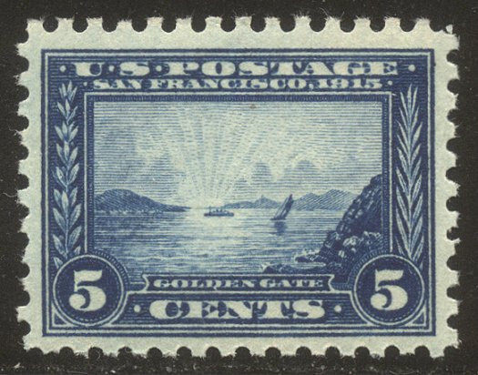 Scott #403: 1915 5c Pan-Pacific, P10 Centering & Condition: Mint. Fresh. Rich color. Very Fine. Reverse (Gum Side): Original gum. Never Hinged. Faults / Imperfections: None The item pictured is the actual item you are purchasing, unless otherwise noted. I also offer an interest-free layaway plan. Ask me about it!" All items purchased will be mailed a day or two after payment is received. --------------------------------------------------------------------------------