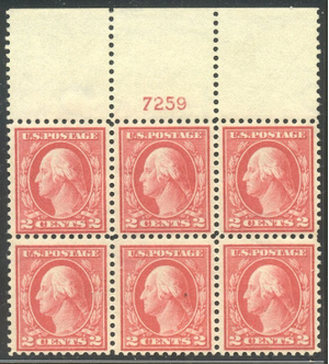 Scott #461: 2c Pale Carmine Red Centering & Condition: Mint. Fresh. Fine-Very Fine and SCARCE Plate Block. Reverse (Gum Side): Original gum. Very Lightly Hinged. Faults / Imperfections: None The item pictured is the actual item you are purchasing, unless otherwise noted. I also offer an interest-free layaway plan. Ask me about it!" All items will be mailed a day or two after payment is received. --------------------------------------------------------------------------------