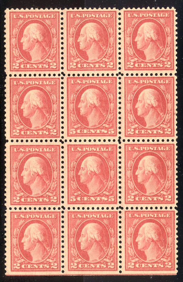Scott #505: 1917 5c Rose, P11 Centering & Condition: Mint. Fresh. Fine-Very Fine Double Error Block.. Reverse (Gum Side): Original gum. The Errors are Never Hinged. Faults / Imperfections: None The item pictured is the actual item you are purchasing, unless otherwise noted. I also offer an interest-free layaway plan. Ask me about it!" All items will be mailed a day or two after payment is received. --------------------------------------------------------------------------------