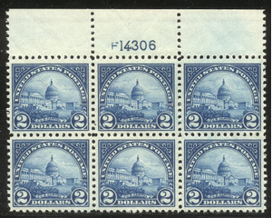 Scott #572: 1922 $2.00 Capitol Centering & Condition: Mint. Fresh. Rich colors. Extremely Fine and CHOICE Plate Block. Reverse (Gum Side): Original gum. Very Lightly Hinged. Faults / Imperfections: None The item pictured is the actual item you are purchasing, unless otherwise noted. I also offer an interest-free layaway plan. Ask me about it!" All items will be mailed a day or two after payment is received. --------------------------------------------------------------------------------