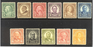Scott #581-91: 1923 Portraits, P10 Centering & Condition: Mint. Fresh. VF/XF and CHOICE Hand-selected set. Reverse (Gum Side): Original gum. Never Hinged. Faults / Imperfections: None The item pictured is the actual item you are purchasing, unless otherwise noted. I also offer an interest-free layaway plan. Ask me about it!" All items will be mailed a day or two after payment is received. --------------------------------------------------------------------------------