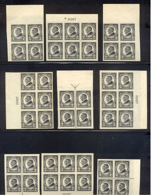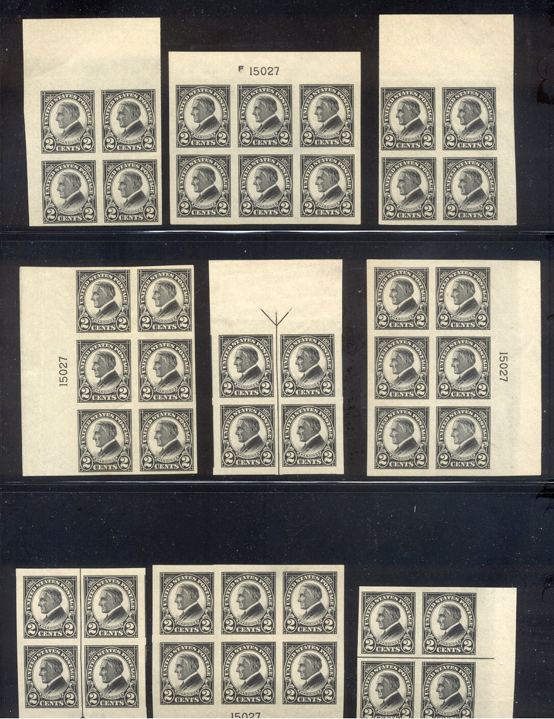 Scott #611: 1923 2c Imperf Harding Centering & Condition: Mint. Fresh. Very Fine set of all Position Blocks except the Centerline. Reverse (Gum Side): Original gum. Never Hinged except the Bottom Arrow Block. Faults / Imperfections: None The item pictured is the actual item you are purchasing, unless otherwise noted. I also offer an interest-free layaway plan. Ask me about it!" All items will be mailed a day or two after payment is received. ![]() ![]() ![]() --------------------------------------------------------------------------------