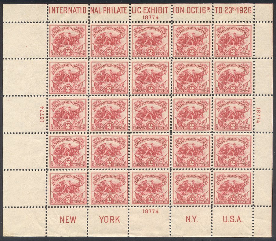 Scott #630: 1926 2c White Plains Sheet Centering & Condition: Mint. Fresh. Very Fine sheet without the typical gum creases Reverse (Gum Side): Original gum. Never Hinged. Faults / Imperfections: None The item pictured is the actual item you are purchasing, unless otherwise noted. I also offer an interest-free layaway plan. Ask me about it!" All items will be mailed a day or two after payment is received. -------------------------------------------------------------------------------- Please click any of the following to read: |